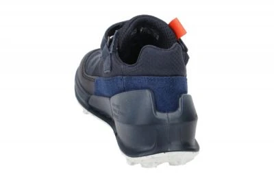 Hersteller: Ecco Hersteller Art-Nr.: 71126260749 Modellname: BIOM K2 – KINDER Machart: Kinderschuhe Jungen, Sneakers Farbe: dunkelblau + blau (night sky/blue depth) Obermaterial: Synthetik + Textil (Nubuck, GORE-TEX = wasserdicht) Innenfutter: Textil / Mesh – atmungsaktiv Innensohle: Textil Fußbett, Ortholite Wechselfußbett: Ja – herausnehmbare Innensohle Laufsohle: Gummisohle Verschluss: Klettverschluss, elastische Bänder Absatzart: flach – kein Absatz Schuhform: rund Größenhinweis: fällt normal aus Weitenangabe: G – normal Weite