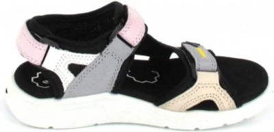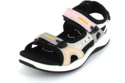 Sportive Jungensandale aus dem Hause Ecco aus einem weichen Veloursleder.Diese Leder hat eine samtartige Oberfläche, ist sehr weiches und atmungsaktiv. Auch die textile Innenverarbeitung überzeugt durch ihre angenehm weiche Beschaffenheit. Die aus Textil bestehende Decksohle bettet den Fuß angenehm. Geschnitten ist die Form für normal breite Füße (Weite F). Der Absatz ist durchgehend flach ,eine robuste und stabile Gummisohle verleiht diesem Kinderschuh die nötige Bodenhaftung. Klettverschlüsse halten den Schuh sicher am Fuß und sorgen auch für die individuelle und optimale Anpassung. Die Schuhgröße fällt regulär aus.